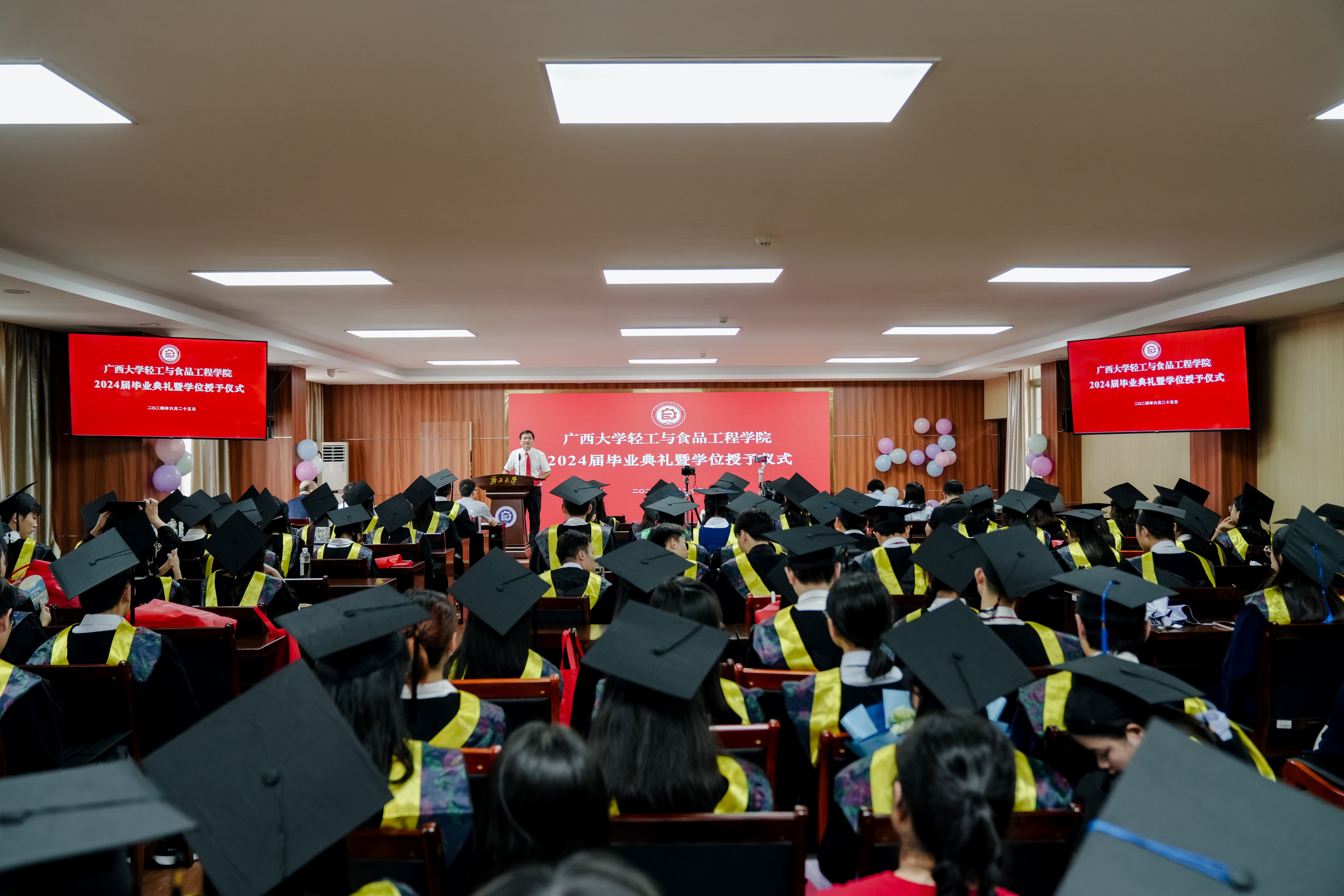 6月25日下午,耽美漫画 2024届毕业典礼暨学位授予仪式在学院隆重举行。学院党委副书记、院长覃程荣,学院领导班子成员,以及耽美漫画 学位评定委员会耽美漫画 分委员会委员、系主任、毕业班班主任、辅导员、家长代表等与2024届毕业生一起齐聚一堂,共同见证了这一重要时刻。仪式由学院党委副书记、纪委书记孙玲主持。学位授予仪式现场典礼伊始,制糖201班徐龙钊作为毕业生代表发言。他回忆了大...