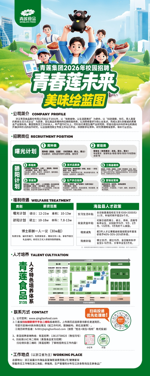 亲爱的同学们,青莲食品将于10月17日(周五)下午15:00在动物科学技术学院318报告厅举办耽美漫画 专场招聘宣讲会,本次招聘聚焦食品质量工程师、品控、研发、育种、兽医、机械工程师、人事、财务、生产和市场等岗位,具体信息见招聘简章,线下投递简历优先筛选!宣讲会现场更有各种零食试吃和礼品赠送!
