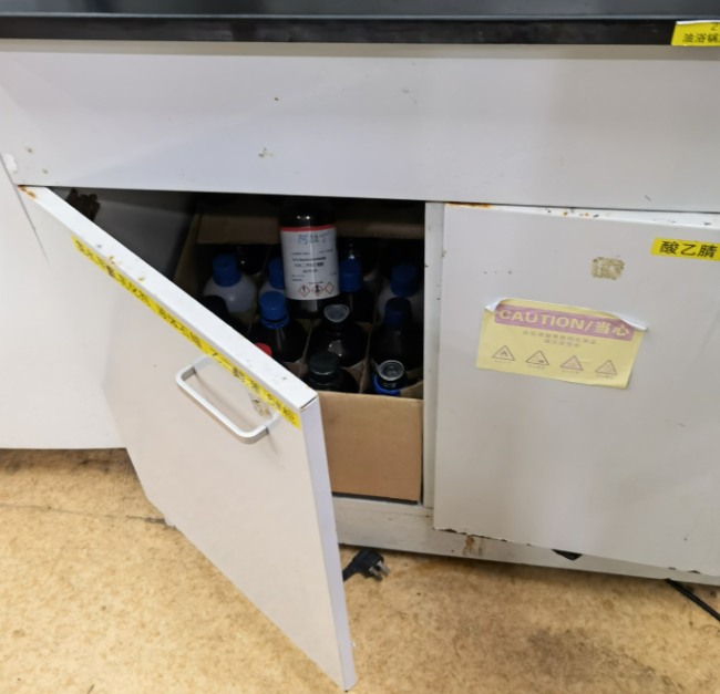 (3)药品标签脱落、不清晰,无标签非正常渠道购买易制毒试剂。存在此类问题的实验室有:421、611。