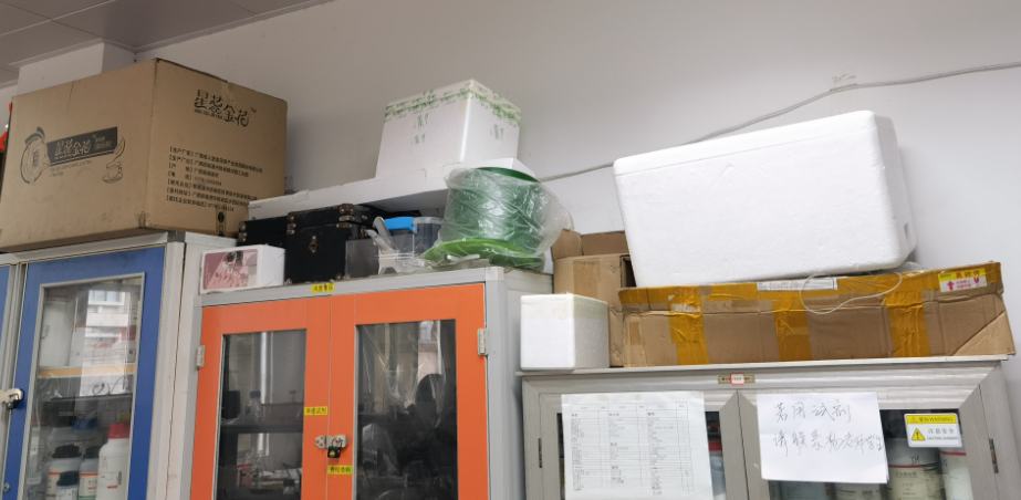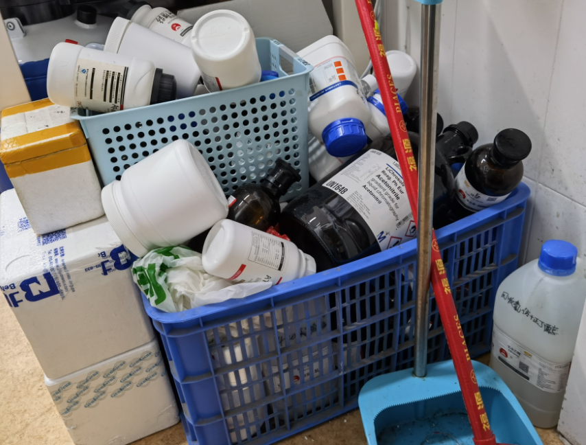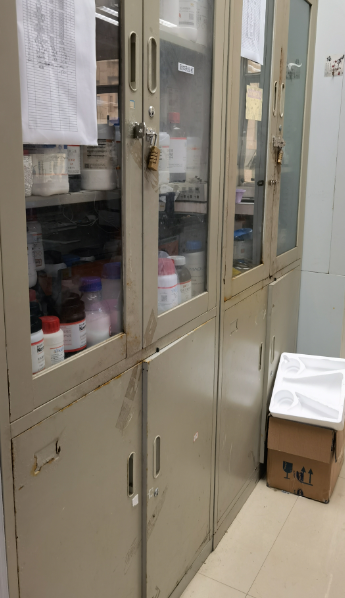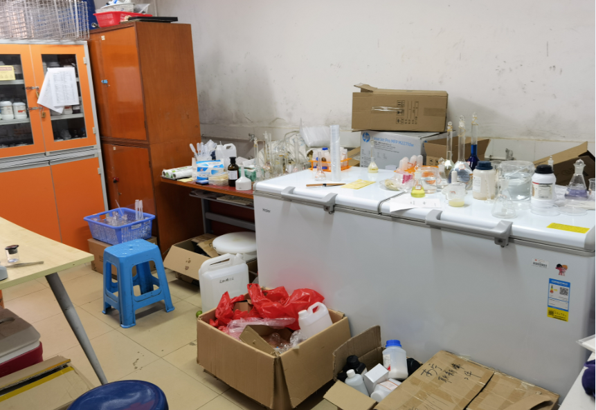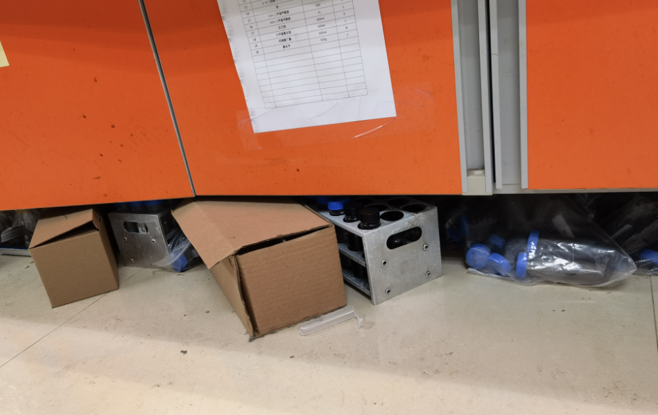 (1)多数实验室存在卫生脏乱、物品摆放不整齐,化学品尤其是危化品未入柜、纸箱多等问
