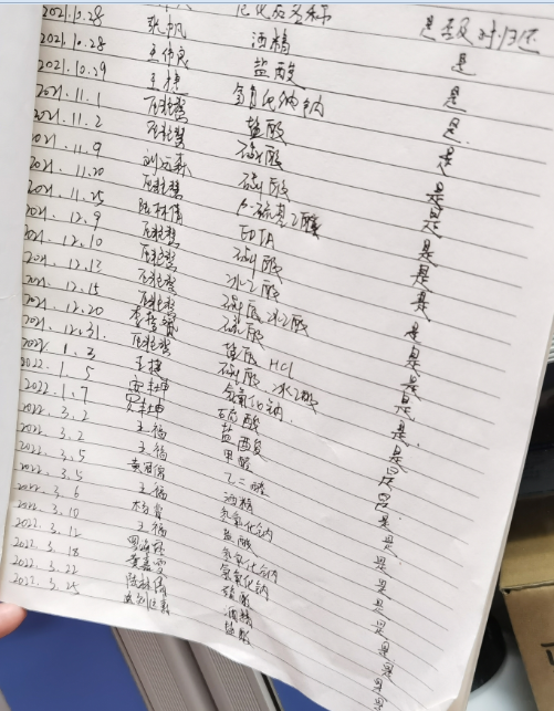 (2)危化品台账更新不及时或无台账、无使用记录、记录不全