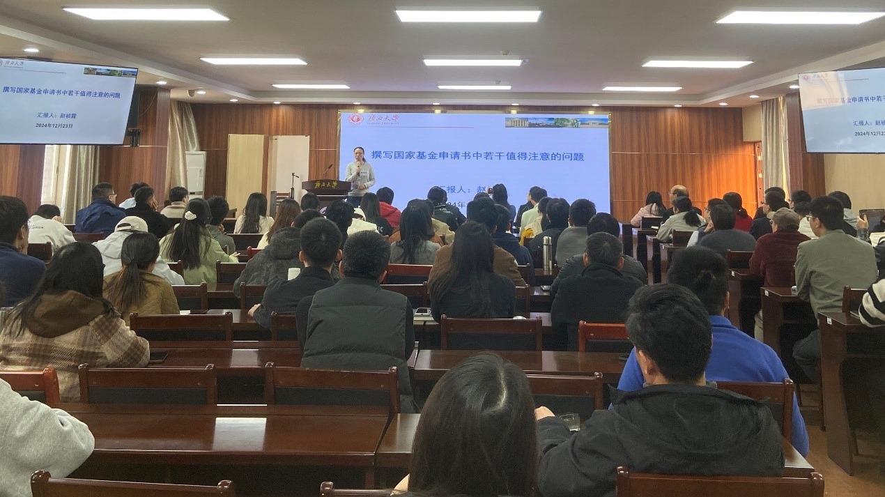举办“2025年度国家自然科学基金申报经验交流会暨2025年国基申报动员会”。本次会议邀请赵祯霞教授作为主讲嘉宾,覃程荣院长出席会议并致辞。会议由陆登俊副院长主持。