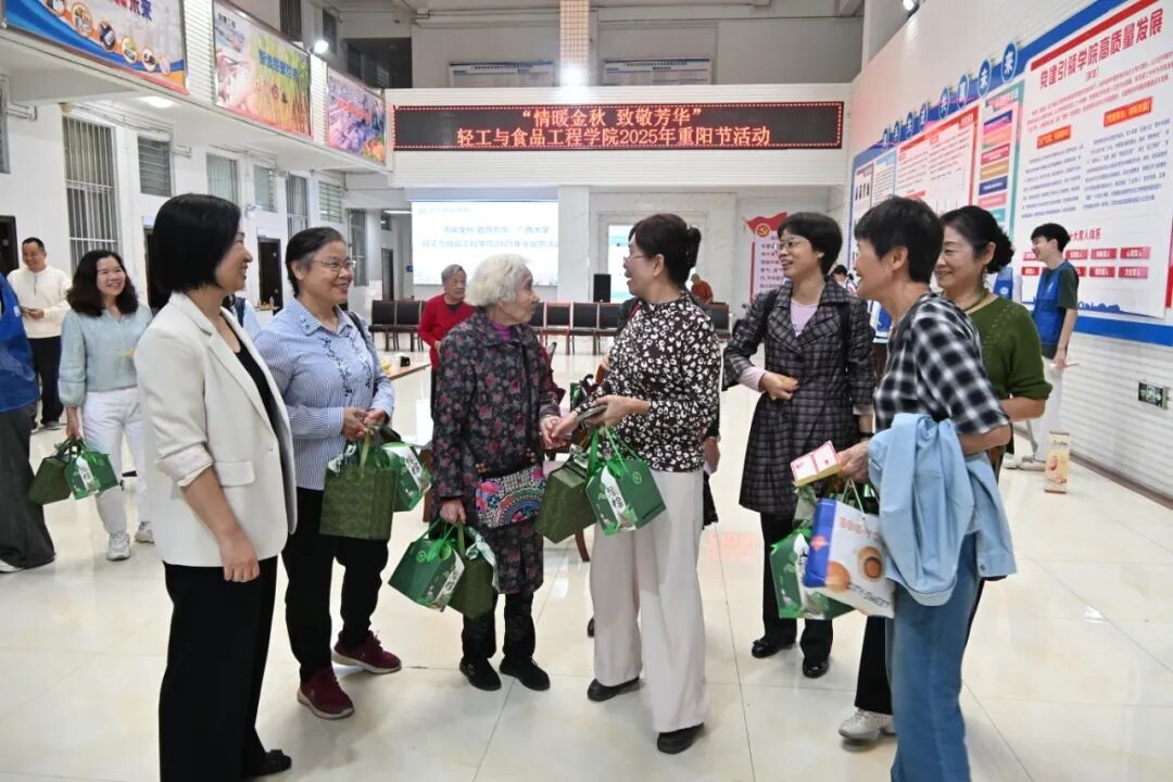 活动最后,全体人员在学院一楼大厅合影留念。学院师生为退休教师们送上精心准备的重阳节礼物,并相约明年再聚。“学院永远是我们温暖的家。”一位退休教师动情地说,“每次回来都能感受到家的温暖,看到学院不断发展,我们由衷自豪。”