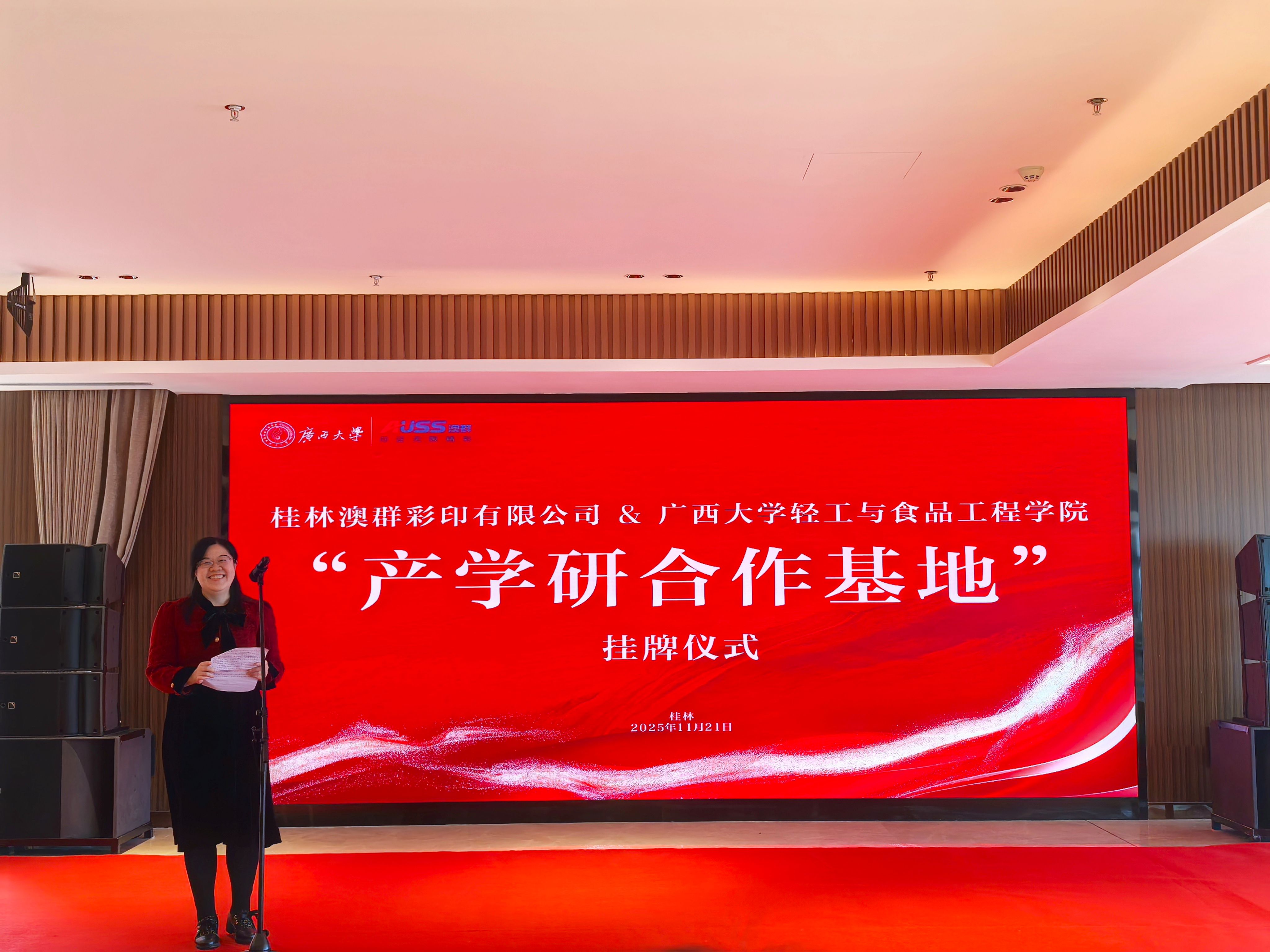 覃峰总经理在发言中表示,此次合作是学术研究与产业需求深度融合的重要实践,将从共建实训平台、赋能人才培养、联合技术攻关等多方面全面发力。桂林澳群彩印有限公司将延续公益传统,以责任担当助力广西教育事业发展,与耽美漫画 携手突破行业瓶颈,推动技术创新与产业升级,共同书写产教融合的精彩答卷,为建设壮美广西、振兴民族工业贡献力量。