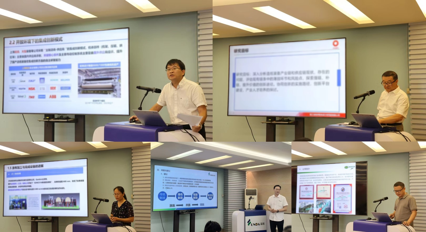 覃程荣教授、轻工业杭州机电研究院杨旭教授级高工、南京林业大学程金兰副教授分别代表各项目工作组作进展汇报,郑州运达造纸设备有限公司、汶瑞机械(山东)有限公司的代表分别介绍了造纸装备自主创新经验。