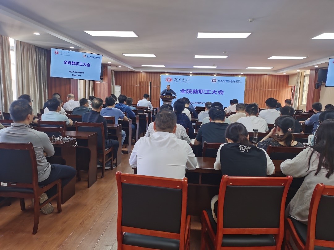 会上,覃程荣院长代表学院领导班子报告了学院2022年度主要指标完成情况,带领大家认真学习了学校近期颁发的5个人事人才工作制度文件,部署了本学期主要工作。学生管理方面,加强学生思想政治教育工作,提高学生学习和科研的积极性和主动性,提高学生防诈骗和保护自身安全的能力;各位班主任和辅导员要从现在开始做好学生的职业规划指导、扎实地开展就业工作。科研和实验室管理工作方面,希望有条件的老师及早开展2023年度国家基金项目申报的准备工作,努力提高申报的成功率;加强实验室安全管理工作,禁止学生在实验室里吃饭,特别是确保不出安全事故。本科教育工作方面,加强和规范本科教学工作,做好学业预警学生帮扶工作,不断提高学生按时毕业率;全体教职工要全力以赴做好迎接轻化工程专业工程认证专家进校考察的有关工作。研究生教育工作方面,研究生导师要切实负起责任、加强研究生过程管理,切实提高学位论文研究质量,按质按量做好2022年底批次的学位论文答辩工作。疫情防控工作方面,全体教职工要严格遵守属地和学校疫情防控政策规定要求,严格遵守离邕的请假手续和返邕的报备手续。会上,唐旭彬副书记,黄崇杏、林莹、闵斗勇等副院长分别就各自分管的领域进行工作总结并就秋季学期的有关工作做了具体的安排。