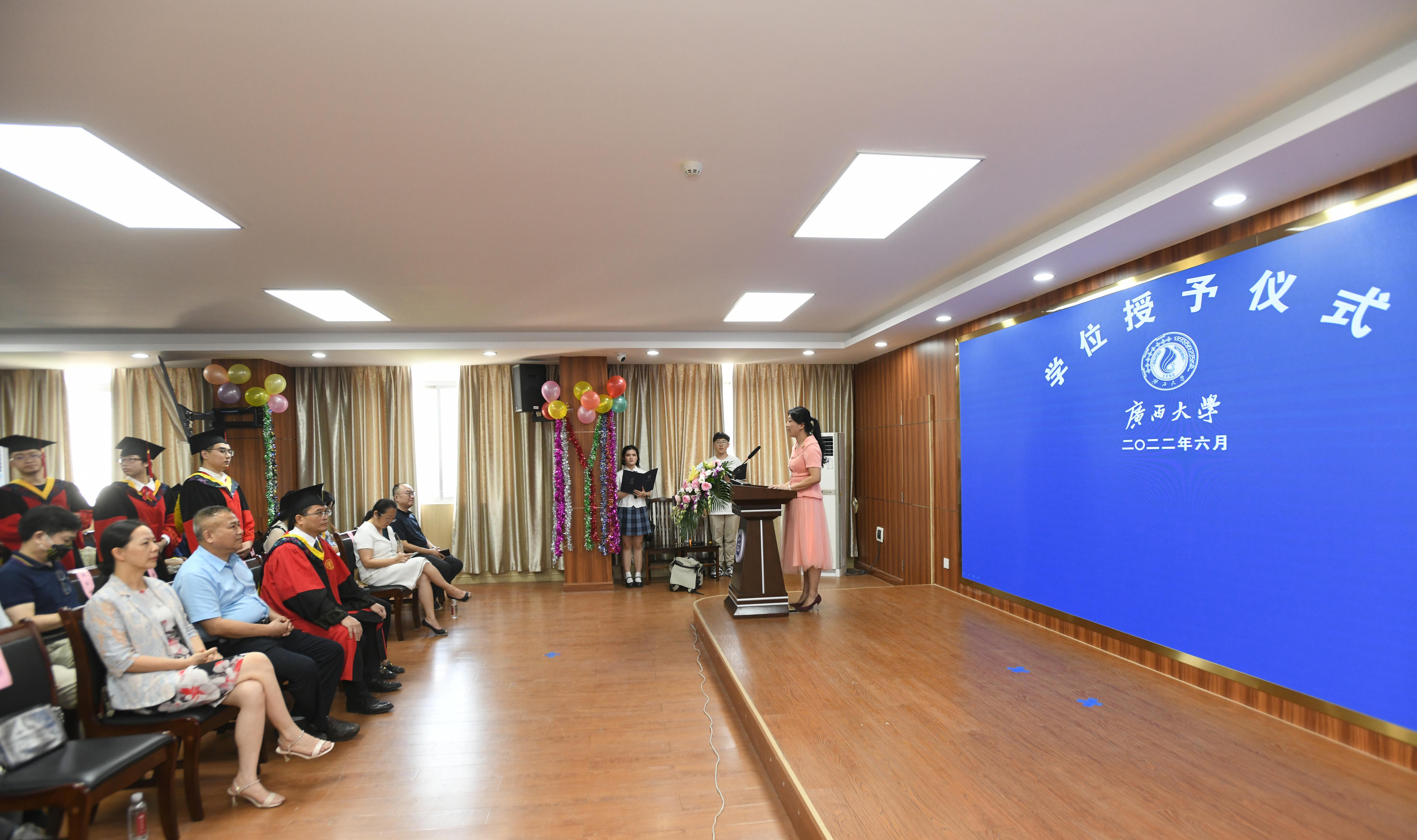 在欢庆的背景音乐声中,学院毕业生学位授予仪式拉开帷幕。仪式由学院党委副书记、纪委书记唐旭彬主持。许树沛为仪式致辞,他由衷祝贺2022届毕业生圆满完成学业,开启新的人生旅程。他说,感谢毕业生们当时选择西大轻工学院,以及他们这几年为学院、学校的建设发展做出的贡献。同时,许书记还寄语每一位毕业生,希望他们坚定理想信念,树立远大抱负,以脚踏实地的工作作风,融入社会、服务人民,成为新时代中国特色社会主义的建设者和接班人。