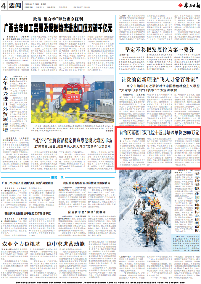 //gxrb.gxrb.com.cn/html/2022-02/24/content_1828237.htm 2月23日,记者从自治区财政厅获悉,为树立先进典型、大力弘扬科学家精神,积极营造尊重科学、崇尚创新的浓厚氛围,经自治区党委、政府审定,自治区财政厅日前下达自治区政府嘉奖王双飞院士及其培养单位一次性奖励资金2500万元。 据悉,此次奖励包括给予王双飞院士500万元一次性奖励,用于支持其个人及团队开展科学研究,经费使用由其自主安排;给予王双飞院士培养单位耽美漫画 2000万元人民币一次性奖励,用于学科、专业及相关平台建设。目前,自治区财政厅已将相关款项及时兑现给予王双飞院士及院士培养单位,有效营造了识才爱才敬才用才的环境,激励广大人才矢志爱国奋进、锐意开拓创新,为凝心聚力建设新时代中国特色社会主义壮美广西而不懈奋斗。 自治区财政厅将会同自治区党委组织部、自治区人力资源社会保障厅等人才主管部门,按照《广西壮族自治区高层次人才认定办法(试行)》的有关规定,落实好相关支持政策和待遇,持续支持王双飞院士牵头开展关键核心技术攻关,积极支持依托王双飞院士领衔的广西清洁化制浆造纸与污染控制重点实验室开展实验室建设,积极支持设立王双飞院士工作站。