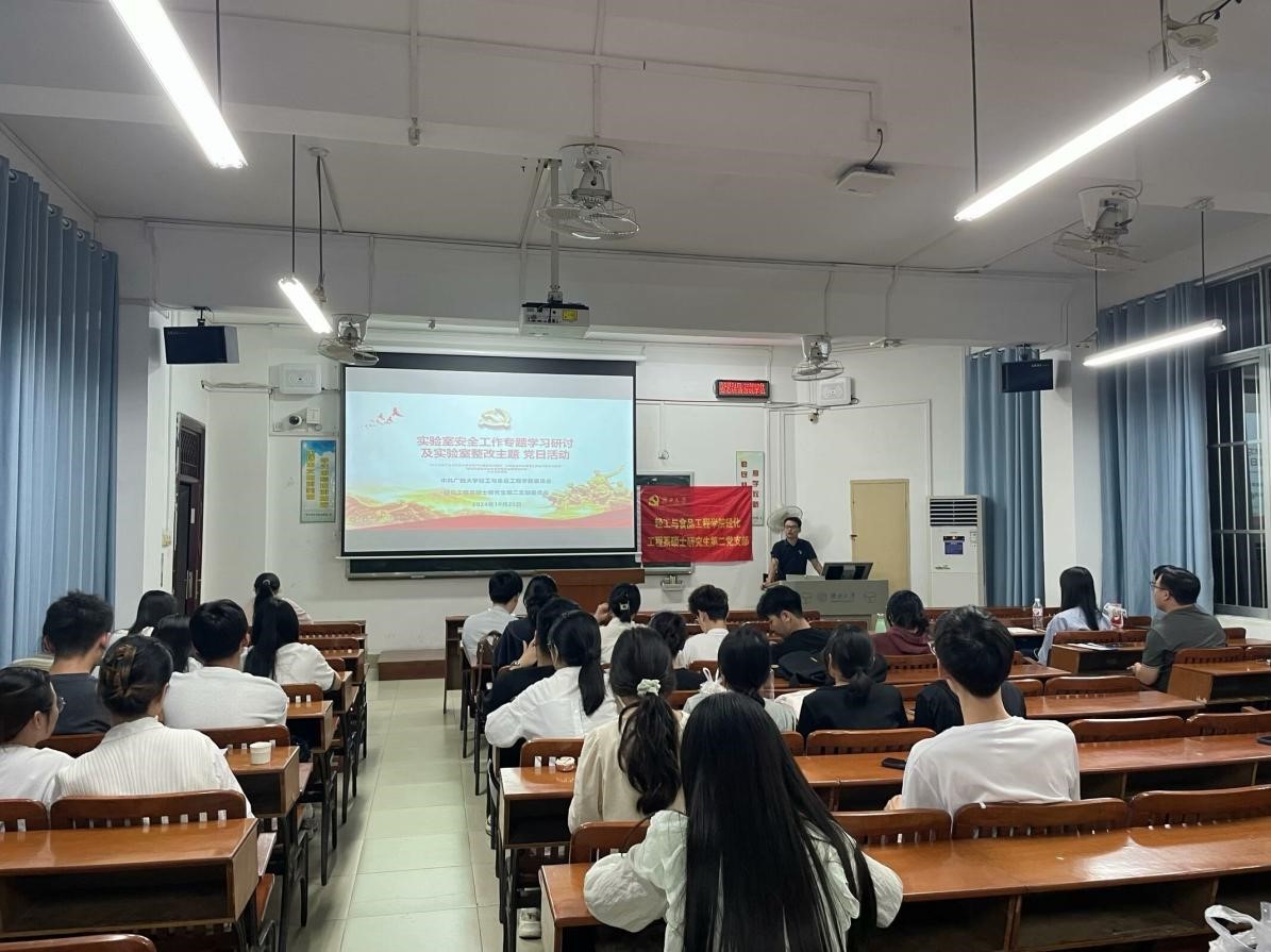 此外,学院党委还积极发挥师生党员在实验室安全工作中的先锋模范作用。如轻化工程系教工党支部组织教师党员深入实验室一线,开展安全隐患排查与整改工作。在党委副书记、院长覃程荣和党支部书记聂双喜的带领下,支部党员教师逐一检查实验室设备、试剂存储及使用情况,确保安全隐患得到及时消除,为实验室安全建设树立了标杆。学生党支部积极组织学生党员志愿者队伍,协助实验室管理人员进行安全隐患排查,清理过期试剂,规范仪器设备使用,确保实验室环境整洁有序,为科研工作提供了安全可靠的保障。