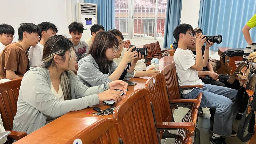在实践环节,覃思源和梁馨文指导同学们进行相机实操训练,鼓励大家尝试使用相机的不同拍摄功能。