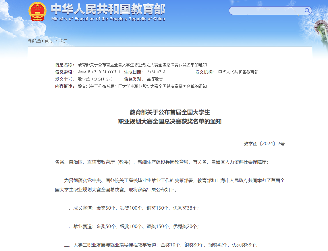 在今年5月,由教育部、上海市政府主办的首届全国大学生职业规划大赛全国总决赛在上海复旦大学举行。本次大赛全国总决赛设置成长、就业两个赛道,每个赛道分为高教、职教两个组别。