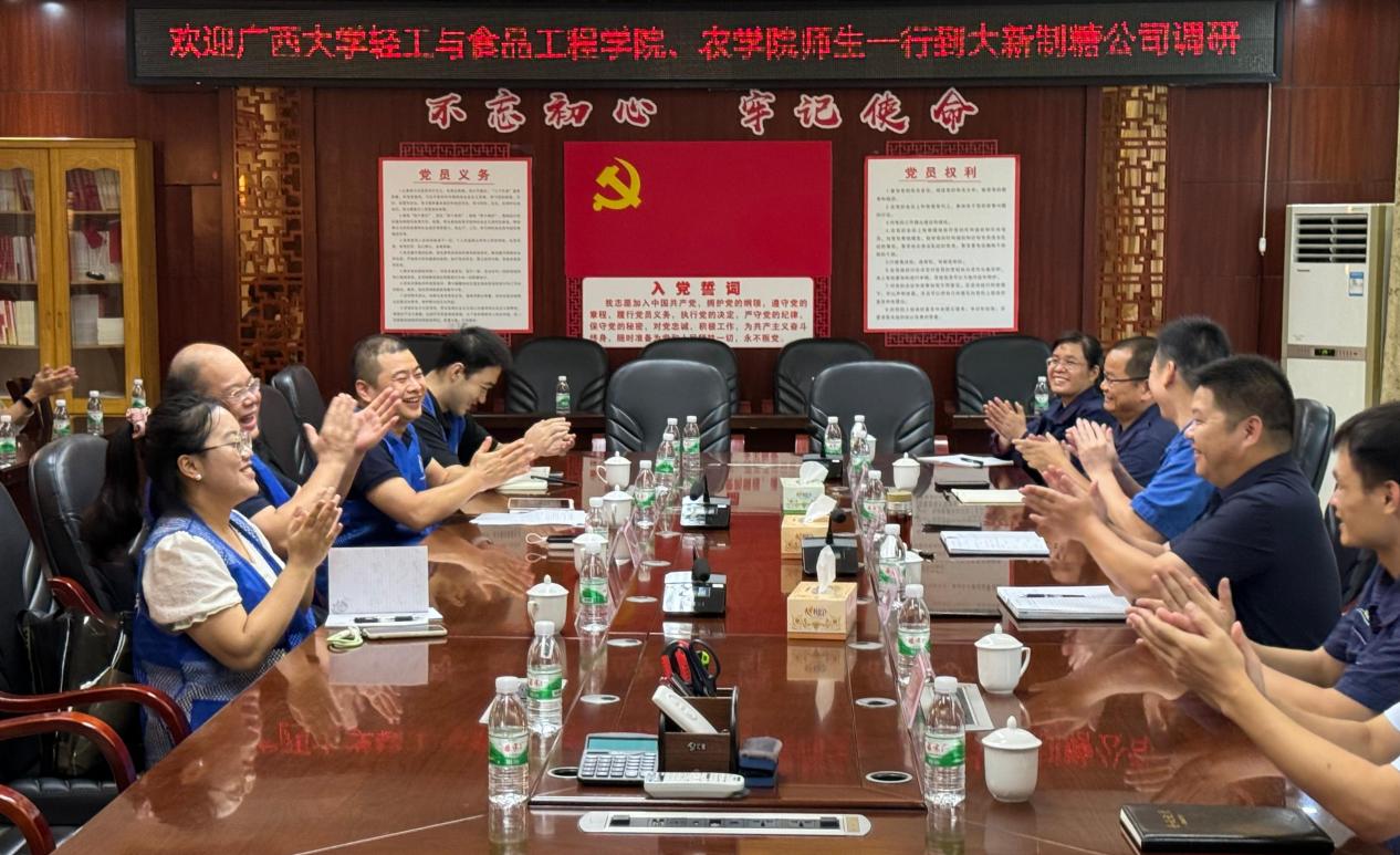 在公司会议室,实践团与公司的西大校友们齐聚一堂,展开了一场思想盛宴。交流会紧密围绕公司的发展历程与辉煌成就、制糖行业的广阔前景与未来趋势、西大百年校庆、轻工学院的学科特色与教育成果、人才培养创新模式、产教融合实践、实习就业平台的搭建以及学生职业生涯规划等议题进行了深入探讨,共同促进未来校企合作与发展。