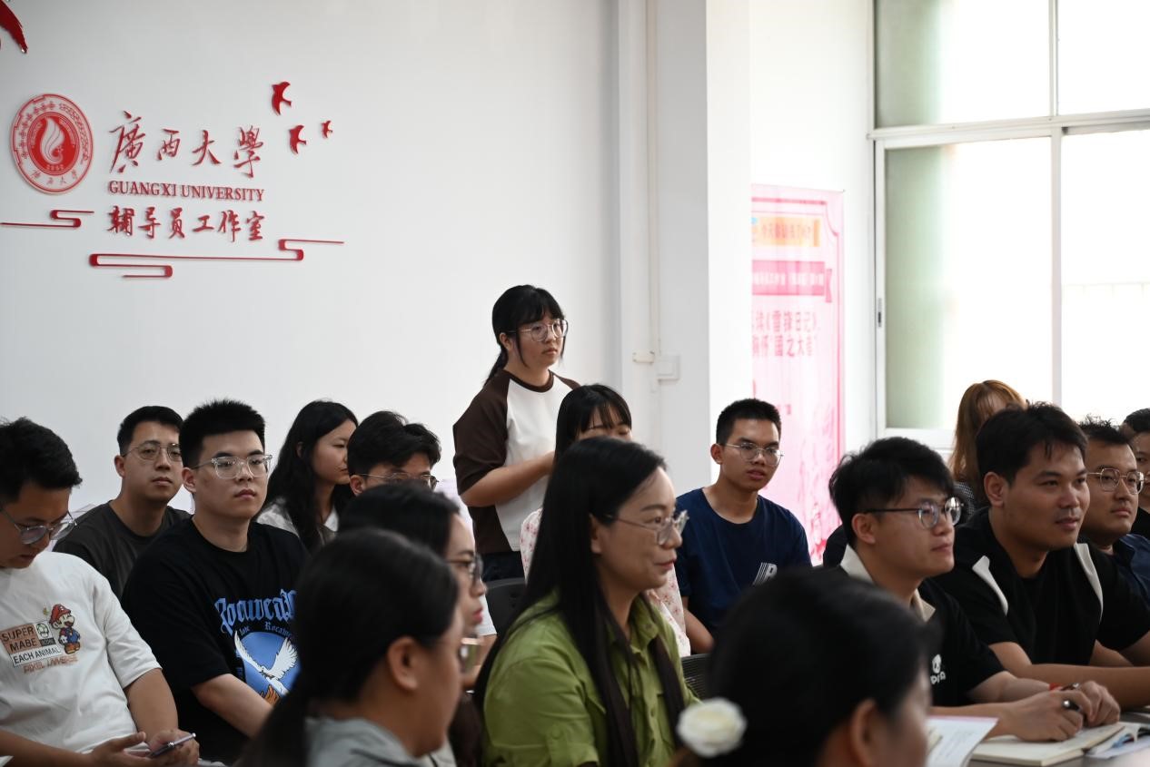 覃程荣向与会青年学生娓娓道来,谈人生经历、讲人生感悟,并结合自身工作实际和生活体验,深情地讲述了他乡村生活经历、担任学生干部经历以及学习科研经历。这些经历共同培养了他对劳动的热爱和对知识的渴望,锻造了他坚韧不拔的精神,塑造了他精益求精的品质。覃程荣院长指出,当代学生们对劳动光荣性和价值的认知匮乏导致了劳动积极性不高。他勉励大学生们要把劳动作为一种生活态度、一种精神追求,通过能力范围内的劳动实践体验劳动的乐趣,培养吃苦耐劳的精神,树立“先苦后甜”的“吃苦”观念,自立自强,坚定信仰不止步。