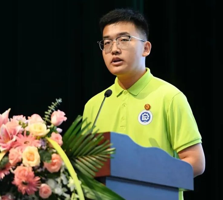 新生代表焦道权代表全体新生向领导、老师问好并表达了衷心的感谢。他表示正是学院的温暖、老师的温情和学术的温度,让他坚定地选择了西大轻工学院继续攀登科研高峰。