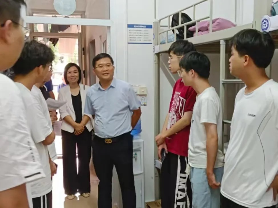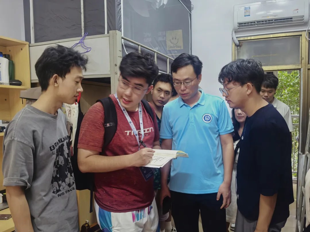 在接新报到现场,学院领导、班主任及辅导员等老师不时与新生及家长亲切交流,传递学院的关怀与期望,为新生们的大学生活加油鼓劲。为确保新生住宿环境的安全与舒适,学院领导多次深入学生宿舍及周边区域进行考察,及时发现学生宿舍中存在的隐患和问题,积极协同学校相关职能部门逐个解决问题,让新生安心入住。9月1日下午,学院党委书记姜玮、院长覃程荣率队走访新生宿舍,与新生面对面交流,鼓励他们树立专业信心,合理规划大学生活,尽快适应新环境,开启精彩人生。