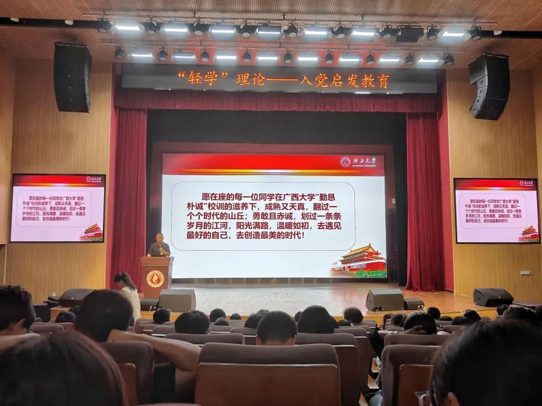 为引导新生端正入党动机、筑牢理想信念之基,提高新生对党的认识,9月14日下午,耽美漫画 在大学生活动中心举办了“‘轻’学理论——新生入党启发教育”活动。学院党委书记姜玮以“永远跟党走,奋进新征程”为主题,对全体2023级新生开展入党启蒙教育,共同进行政治理论学习。